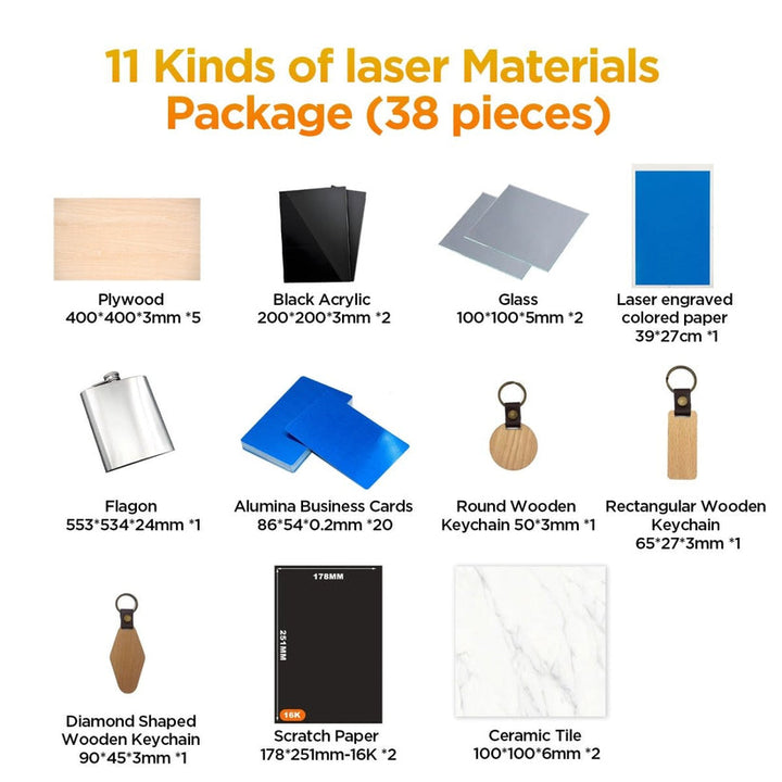 Acmer 11 Kinds of Laser Materials Package(38 pieces)