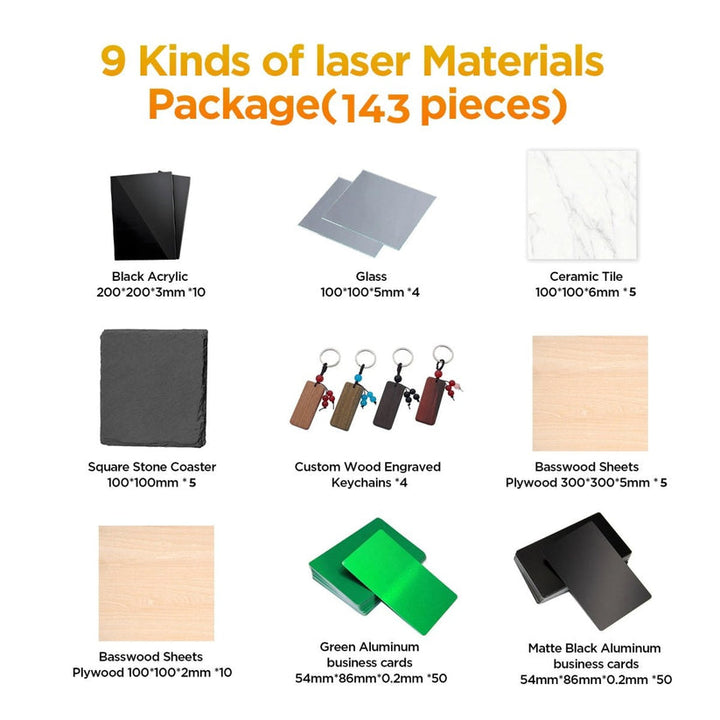 Acmer 9 Kinds of Laser Materials Package(143 pieces)