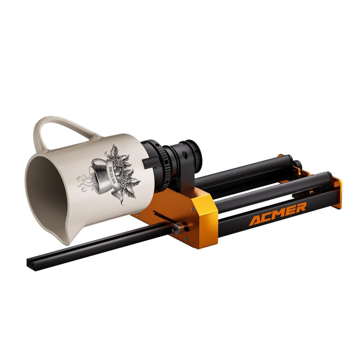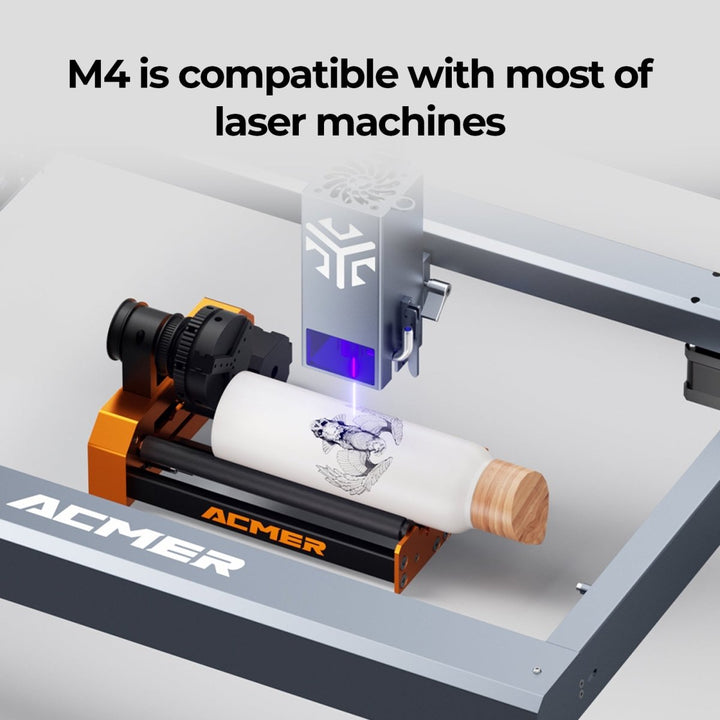 1. ACMER 4-in-1 Laser Rotary Attachment - M4, including roller rotation, chuck rotation, sphere engraving module and ring engraving stud. You can unleash your creativity on almost any cylinder by replacing accessories such as wine glasses, snowman cups, baseball bats, rings, balls or cups with handles.