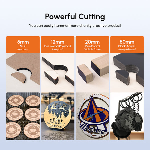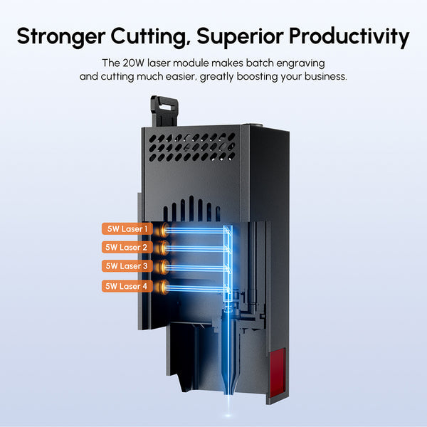 The 20W laser module makes batch engravingand cutting much easier, greatly boosting your business.