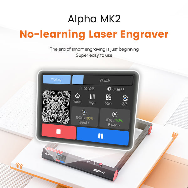 - Rapid Processing Speed: Capable of achieving image engraving speeds up to 20,000mm/min, the Alpha MK2 significantly enhances productivity for both hobbyists and professionals.