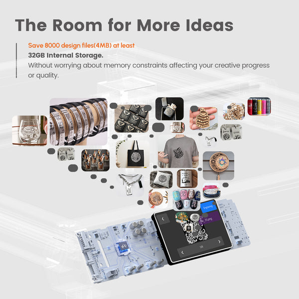 - Customizable Projects: Users can import their own designs via USB, WLAN, or virtual disk, and adjust engraving parameters such as speed, power, and passes to suit specific material and design needs.