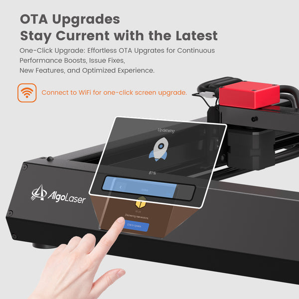 - Standalone Operation: Simply drag to adjust the image position and size directly on the screen running AlgoOS, offering intuitive touch-to-engrave functionality and access to advanced features directly from the device.