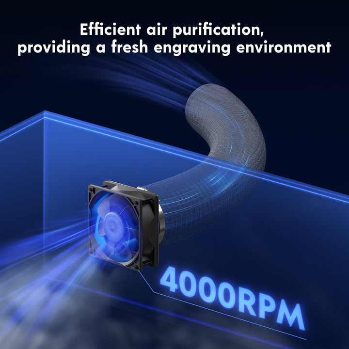 ➤ Equipped with exhaust fan and pipe to speed up the air circulation, and make the laser work more fully, while eliminating smoke and odor.