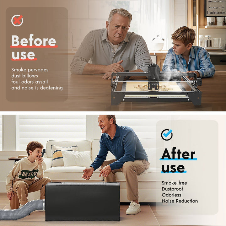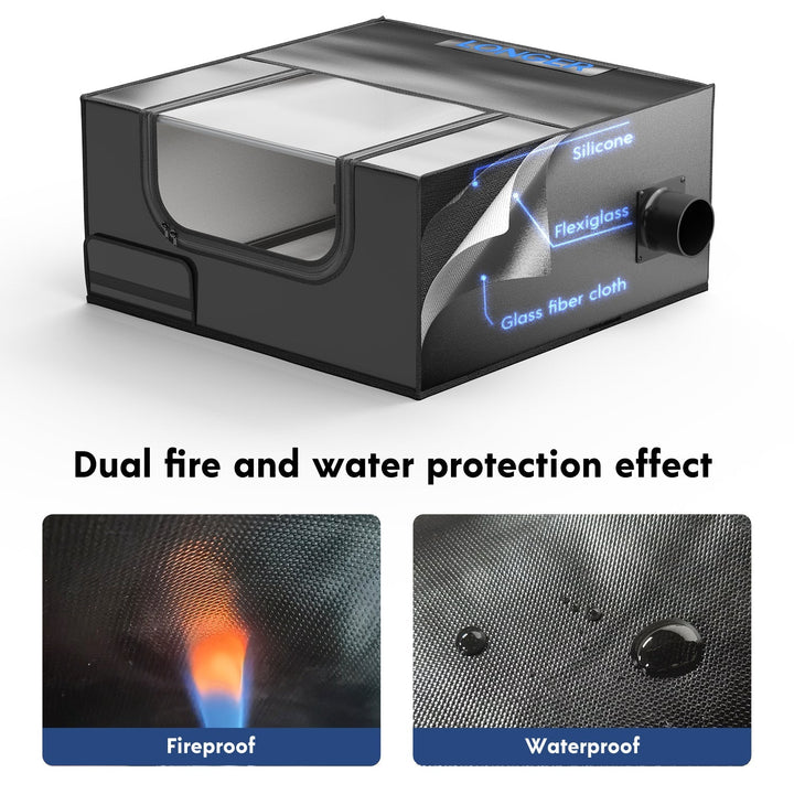 ➤ 27.5"*27.5"*12.99"/700x700x330 mm large size space, suitable for all powers of Ray5 and most laser engraving machines on the market.