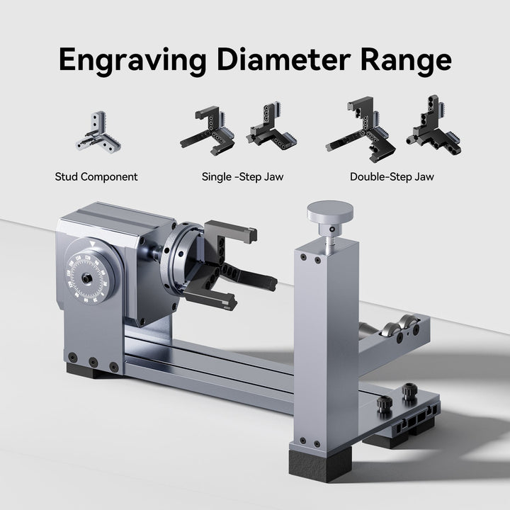 2. Independent Dial: Easily record and repeat engraving with the convenient dial. Efficiently rotate and engrave conical objects, inner walls of rings, bracelets, wine glasses, spheres, etc.