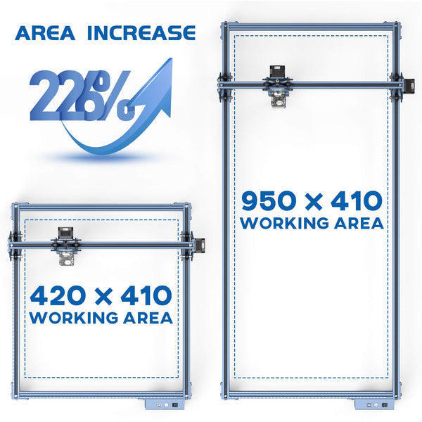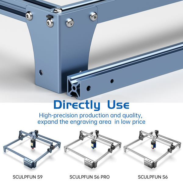 1. Quickly expand the engraving area of SCULPFUN S6/S9 in low price : By replacing the frame shafts of S6/S9, it can quickly obtain a huge engraving area of 410x950mm(226% area of standard S9). Meet the needs of large-area engraving users.