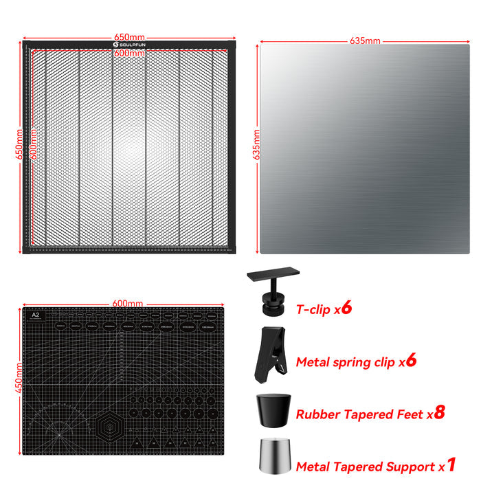3. Professional metal clamps: SCULPFUN honeycomb panel provides uniquely designed metal clamps, including high-strength metal clamps and T-shaped clamps, which can easily clamp curved wood or even metal plates to keep the carved surface flat.