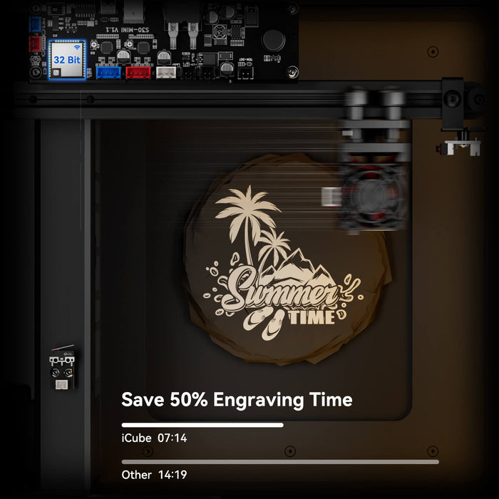 2. High-Speed Engraving: iCube Pro 5W laser engraver with the 32-bit motherboard greatly improves the engraving efficiency, which can reach 10000mm/min engraving speed.