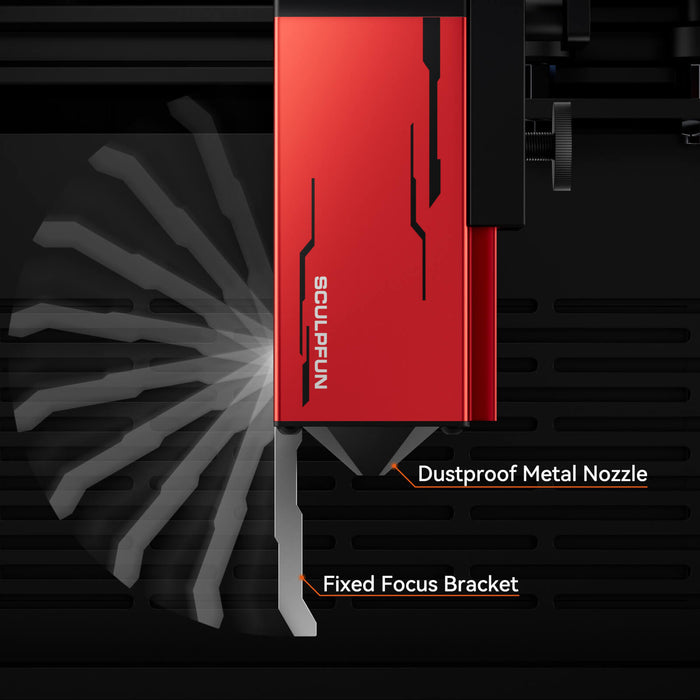 8. Replaceable Laser Lens: Sculpfun iCube series adopts an innovative laser head that supports to replace the laser lens, which greatly improves the service life of the laser by more than 10 times longer than that of other general lasers. When the lens is damaged or dirtied after long-term use, it can be replaced to restore the cutting power.