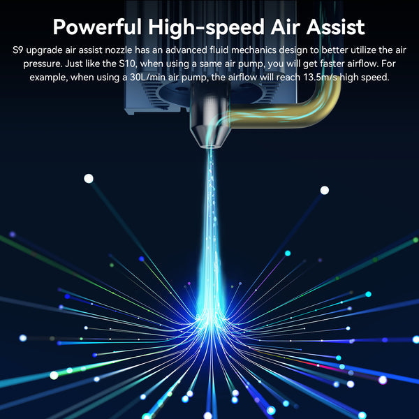5. Complete accessories for air assist upgrade: The product includes SCULPFUN 30L/min silent air pump, S9 air assist nozzle, air pipe, sealing ring and other installation accessories you need. You don't need to buy additional accessories, directly to upgrade the S9 machine.
