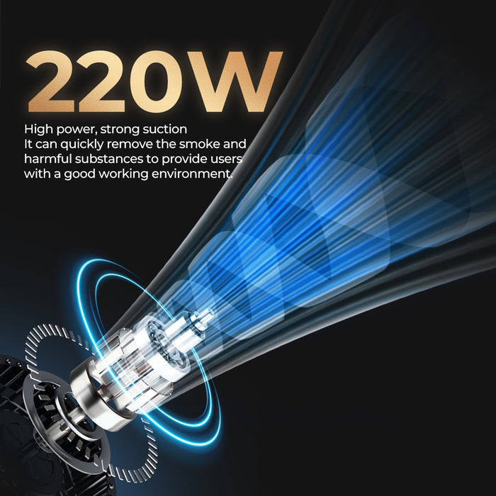 1, Powerful effect: 220W strong suction power can quickly remove smoke and harmful substances, providing users with a healthy and safe working environment.