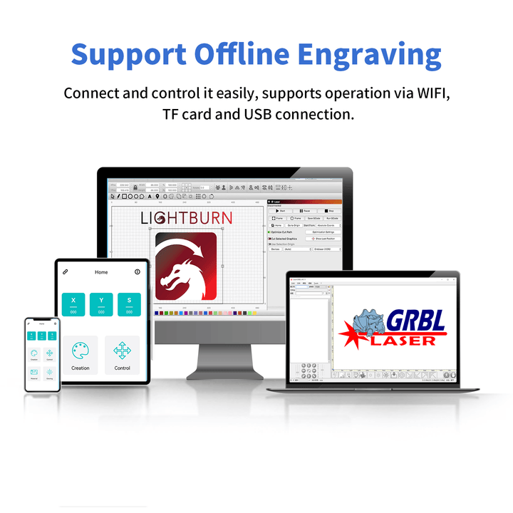Support Software | LaserGRBL (Open Source, Free), LightBurn (Paid), Suppot Win XP/Win7/Win 8/Win 10 System |